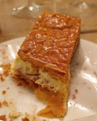 La table est mise dans ma cave et sur le reste du Champagne Krug Private Cuvée années 40, nous goûtons un camembert excellent. Le champagne a profité de la nuit et s’est ouvert, avec une joie de vivre plus grande, même si les bulles sont plus rares. Ce champagne est devenu très agréable, même s’il n’a pas vraiment un goût de revenez-y.