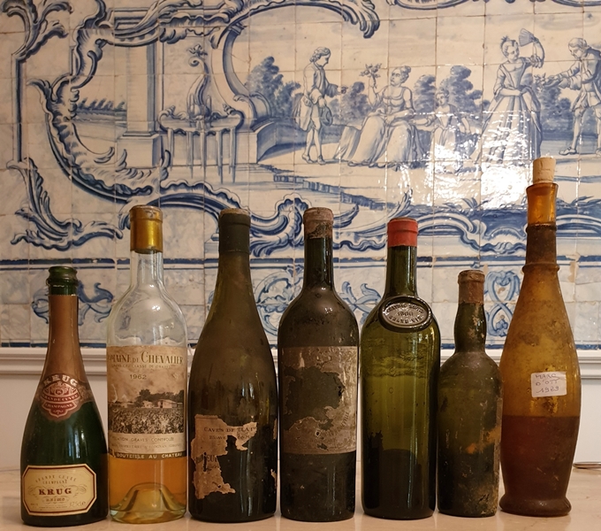 1/2 Krug Grande Cuvée, Domaine de Chevalier 1962, Meursault années 40, Pichon 1904, Pétrus 1900, Pedro Ximenez, Marc de rosé d’Ott 1929. Belle brochette !
