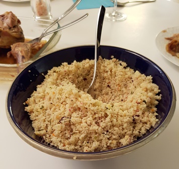 Pour le gigot d’agneau bio cuit à basse température et accompagné d’une semoule aux fleurs fraîches, j’ouvre au dernier moment une Côte Rôtie La Mouline Guigal 1996. Le niveau est si haut dans la bouteille qu’en tirant le bouchon, la dépression fait gicler du vin. La couleur du vin est foncée, presque noire. Le nez est intense et puissant, comme un vin de l’année. En bouche, le vin combine étonnamment la puissance et la fluidité. Le vin est fort mais frais. Il est d’une précision diabolique et nous sommes d’avis, ma fille et moi que les deux vins de ce repas sont des 100 points Parker, si l’on veut par-là exprimer qu’ils sont parfaits. Et cela bouscule beaucoup d’idées reçues, car la Mouline a plus de vingt ans et a la puissance d’un vin de cinq ans tout en ayant le velours et le charme d’un vin de quarante ans. Il reste un peu des deux vins à vérifier demain. Mais la fraîcheur, le charme et l’équilibre des deux vins de ce soir sont confondants.