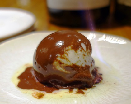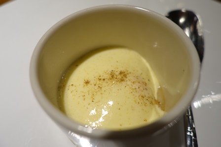 Le Château Chalon Jean Bourdy 1929 a un parfum d’une rare puissance. Il est riche, fort en alcool, et n’a pas le moindre signe d’âge. Il est glorieux, joyeusement oxydatif. Jean et Alexandre l’ont associé à deux plats en prenant des risques. Avec l’huître magnifique, l’accord se trouve. Qui l’eût dit ? Avec les raviolis (Plins) aux escargots, l’accord est pertinent. Une longue discussion porte sur l’intérêt de la réglisse associée à ce vin du Jura. Je ne suis pas favorable à associer réglisse et vin jaune alors que mes amis, le chef et, par la voie de SMS, Jean-Philippe, sont d’accord. Nous resterons sur cette divergence de vision tout en applaudissant à la fois le vin grandiose, un vin jaune d’exception et les plats de haute cuisine.