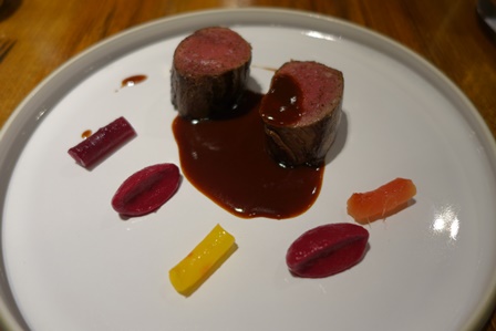 Jean Sulpice est un magicien des herbes, dans la lignée de Marc Veyrat et sait trouver toutes les splendeurs gustatives des herbes, épices et légumes. Chaque plat, même osé, est d’une rare cohérence, pertinent et gourmand. On aurait pu penser qu’au troisième repas nous aurions fait le tour de la cuisine du chef mais il découvre chaque fois des pistes nouvelles qui nous ravissent. Le plat de légume m’a émerveillé, comme les huîtres chaudes goûteuses et le chevreuil gourmand et fin à la fois. Lorsqu’un croque le Plin, on se représente la forme de l’escargot, lors d’un amuse-bouche, le cresson intense et vivant emplit nos narines. La betterave avec la chair du chevreuil est magique. Tout est saveur.