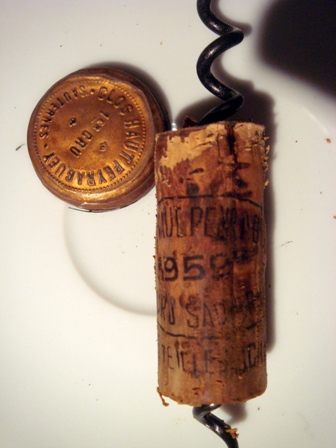 Le bouchon du Chateau Palmer 1966 et celui du Clos Haut-Peyraguey qui découvre enfin son année : 1959