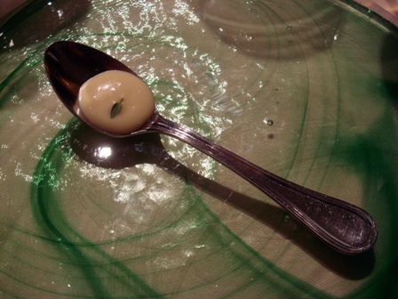 Lait de poule au jasmin (dans une coquille il y a une bougie d’anniversaire !)