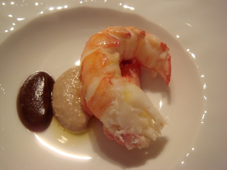 Langoustine pochée, pâte d’algue Kombu, condiment langoustine