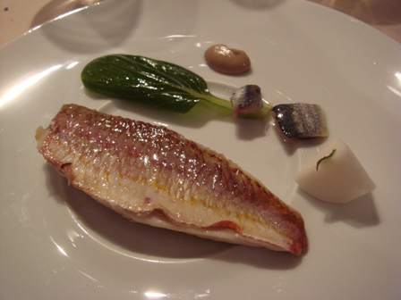 Rouget au naturel, feuille d’arroche, pok, chaï, crème d’anchois, sardine et anchois fumé