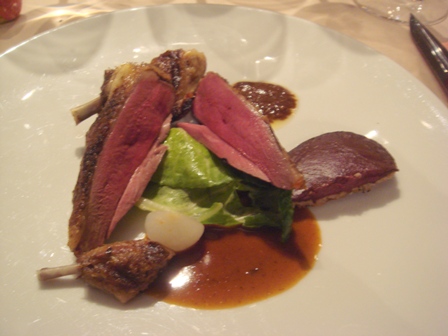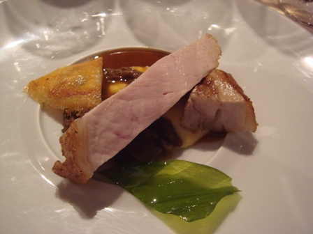 Carré de veau de lait, fondue de parmesan, tomme d’Auvergne gratinée, morilles cuisinées, jus de viande