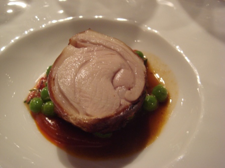 Épaule de cochon de lait, premiers petits pois au chorizo