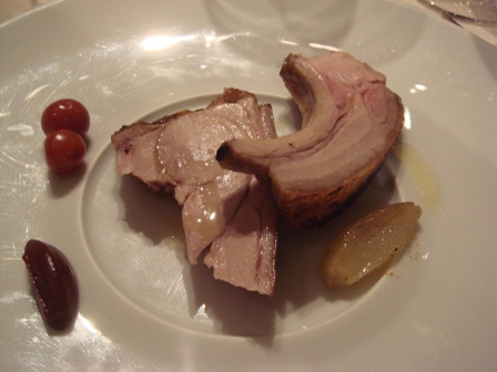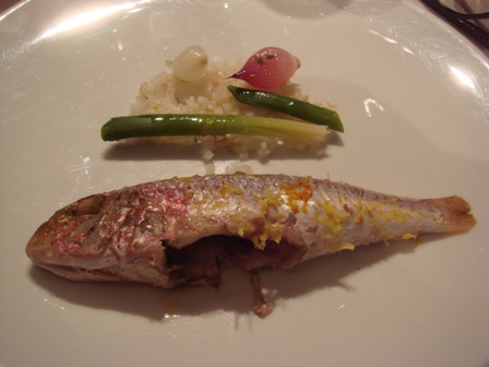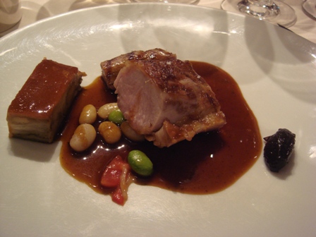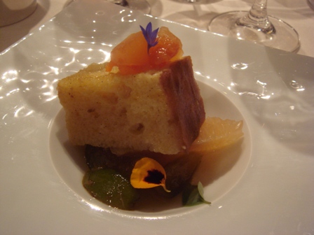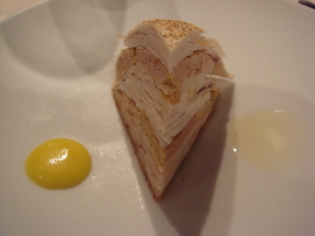 la couleur merveilleuse du Dom Ruinart rosé 1981 et Vieille Mimolette, gelée de fruits rouge (très légère), dont l’accord ne me convainc pas.