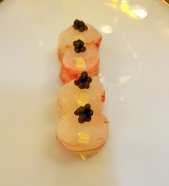 Ma femme et moi, nous aimons les dîners à quatre mains, car mettre en commun les talents de deux grands chefs, cela peut créer des étincelles de génie. Par Instagram, j’apprends qu’Arnaud Lallement, le chef trois étoiles de Reims vient faire la cuisine à l’hôtel Ritz, à la Table de l’Espadon, aux côtés de Nicolas Sale. Je réagis au plus vite pour obtenir une table et j’ai bien fait car lorsque nous arrivons à l’hôtel, nous apprenons que le restaurant a fait le plein de réservations.