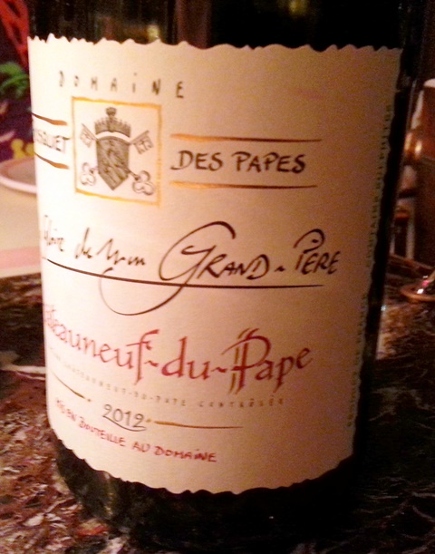 Pour le chateaubriand et les viandes de mes convives j’ai commandé un Châteauneuf-du-Pape La Gloire de mon grand-père Domaine Bosquet des Papes 2012. Ce jeune vin est excellent, rond, fruité, exactement ce qui convient pour la viande écossaise bien maturée.