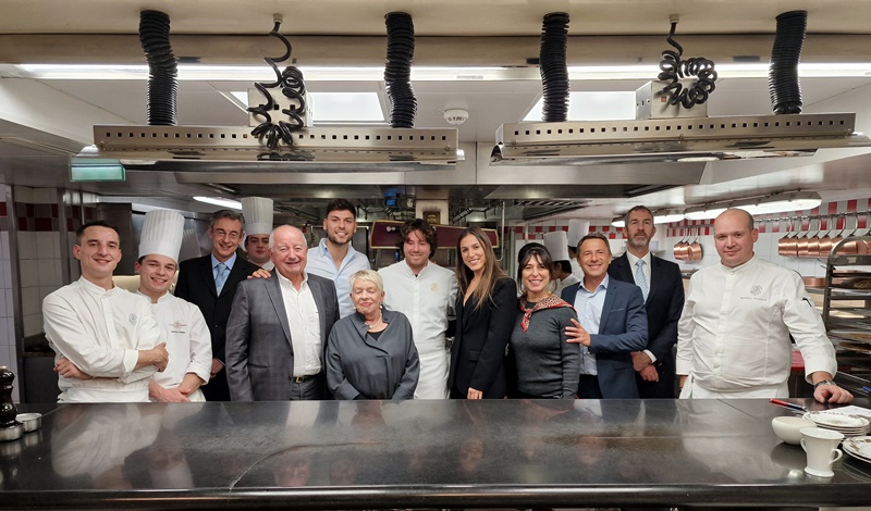 Je ne sais si c’est à ce moment du repas mais nous sommes invités à visiter la cuisine pour une photo souvenir avec le chef souriant. Cet intermède est sympathique.