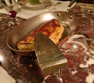 Le sommelier-chef Laurent nous a proposé des vins de haut niveau avec une délicatesse qui mérite des compliments. La cuisine de Jean Imbert est de grande qualité avec des cuissons précises et des sauces délicieuses. Dans un cadre raffiné nous avons passé une agréable soirée. Trouver un taxi ne fut pas facile tant la liesse de la victoire du Maroc sur le Portugal au championnat du monde de football était tombée dans l’excès.