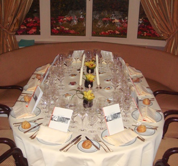 Voici notre table que des cyclamens curieux regardent à travers la fenêtre