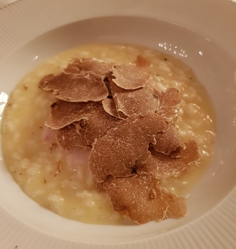 Dans de grands verres Gaëtan Lacoste, le chef sommelier, nous verse le Château Laville Haut-Brion Graves blanc 1985. Le parfum de ce vin est exceptionnel. Je pense n’avoir jamais senti un Laville Haut-Brion avec un parfum aussi sensuel, développant des myriades de senteurs envoûtantes. En bouche le vin est grand, noble, expressif et trouvant une résonance avec la truffe blanche absolument idéale mais le parfum du vin est à dix coudées au-dessus. Le vin est resté constamment brillant et très long, aussi bien sur le rouget que sur les fromages, mais c’est sur le risotto qu’il a brillé particulièrement. Ce vin cinglant, tranchant et gastronomique est un très grand vin et l’année 1985 particulièrement réussie.