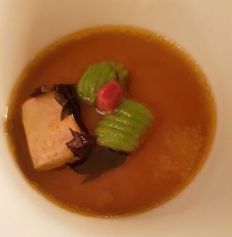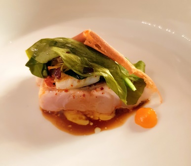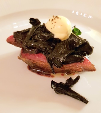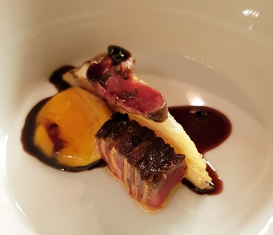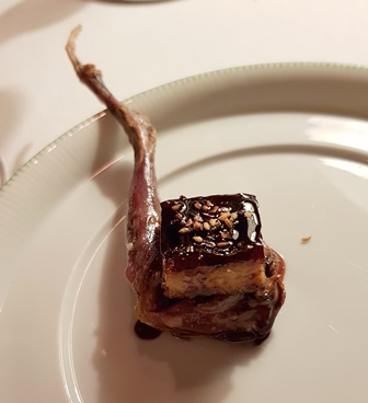 Je commence à être un peu fatigué de l’effet terre-mer qui est dans l’air du temps. J’ai adoré l’anguille sur la patte du pigeon mais j’ai moins apprécié le pied de cochon sur la Saint-Jacques même si c’est tout-à-fait possible. Il est certain que la cuisine du chef est de grand talent et je reviendrai volontiers en demandant peut-être un peu moins de sophistication.