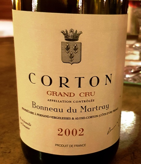 Le Corton Grand Cru domaine Bonneau du Martray 2002 a été carafé à la demande de Bipin Desai alors que j’étais d’un avis contraire. Mais Bipin est mon aîné. Le vin est riche, opulent, au grain lourd et il brille sur le pigeon. Il est carré et je crois que c’est la décantation qui rend le vin plus lourd, plus large alors que sans cette opération nous aurions bu un vin plus sensible et gracieux. C’est de toute façon un grand vin de richesse et d’expression.