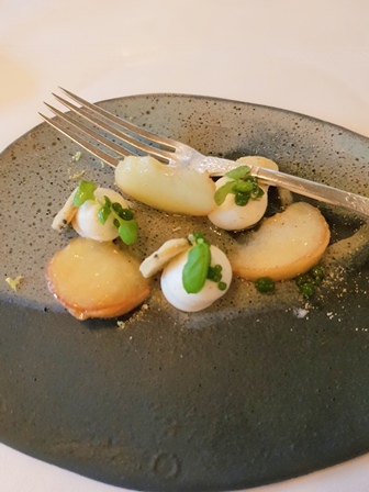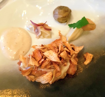 Etant encore en avance au restaurant Le Grand Véfour, j’ai le temps d’étudier la carte des vins et de bavarder avec l’excellent sommelier qui pratique une politique tarifaire intelligente. Lorsqu’il arrive, je propose mon choix à Didier qui l’approuve et avec l’incontournable maître d’hôtel tellement talentueux qu’il guiderait nos choix où il veut et nous aurions l’impression d’être seuls à avoir choisi, nous bâtissons un repas à quatre plats, deux pour chaque vin.