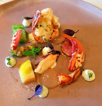 Le menu que nous avons eu l’impression de choisir nous-mêmes est : homard bleu servi tiède, tomates de couleurs et en eau, huile d’olive de la Fare Les Oliviers et sel noir / ravioles de foie gras, crème foisonnée truffée / ris de veau, artichauts blancs et violets, émulsion au jus corsé infusé au foin / Parmentier de queue de bœuf aux truffes.