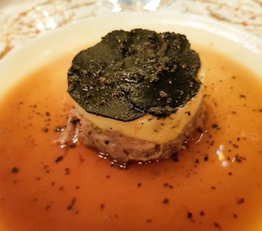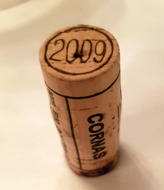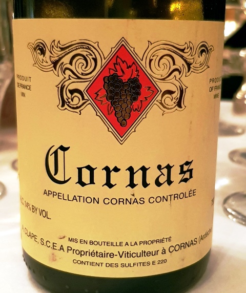 Le sommelier Romain Alzy, lorsque j’avais évoqué le nom de Clape à mon arrivée m’avait dit qu’il ne présente sur carte que le vin de Cornas « La Renaissance » et pas le Cornas, qu’il garde hors carte. Il n’a pas fallu longtemps pour que le choix se porte sur le Cornas Domaine Clape 2009, hors carte. L’attaque du vin est glorieuse et riche. Voilà un vin qui pulse ! Il a une belle matière, un beau grain et une belle largeur. Curieusement, le finale me paraît un peu perlant ce qui lui enlève de la précision et de la longueur mais tout va s’arranger lorsque le vin sera épanoui. Il accompagne ses deux plats, le ris de veau et la queue de bœuf fort judicieusement mais c’est surtout sur la queue de bœuf qu’il prend son envol, lui aussi aidé par la truffe.