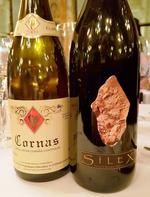 Le Blanc Fumé de Pouilly « Silex » Didier Dagueneau 2012 est servi froid mais se réchauffe vite. Il est fascinant de minéralité, vive mais agréable. Le vin est précis, fluide et racé. Il est sans concession comme les champagnes de Selosse. Sa fluidité, son tranchant et sa longueur sont impressionnants. Le homard bleu réagit bien avec le vin mais il faut éviter les tomates et d’autres petites saveurs qui forment un patchwork. A l’inverse, sur les raviolis délicieux et cohérents, l’accord est d’un grand naturel, conforté par la truffe.