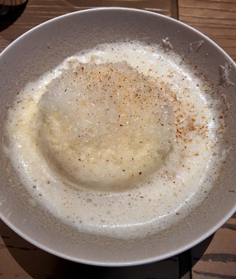 Disons-le tout de suite, ce repas est remarquable. Ce qui m’a impressionné, c’est la pertinence des acidités. Tout est bon et réalisé avec talent. J’aurais préféré l’entrée un peu moins froide, ce qui n’aurait pas entamé sa fraîcheur et j’ai trouvé que l’huître étrangle un peu la chair si parfaite du rouget, la rendant moins lisible, alors que le pigeon est d’une réalisation idéale, la chair étant totalement mise en valeur. Les deux plats les plus brillants sont le soufflé et le pigeon. Un rêve.