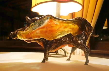 La décoration n’a pas changé d’un pouce avec des motifs de chasse mais aussi une accumulation de faïences de toutes régions. Il y a un petit côté hors du temps en ce lieu car il n’y a pas le moindre endroit qui serait décoré différemment de ce que j’ai connu il y a un demi siècle. Il y a sans doute eu des transformations, sauf en ce qui concerne l’accueil et le restaurant. La valeureuse Christiane, complice de toutes mes exigences est partie à la retraite en Bretagne. Elle nous manquera.