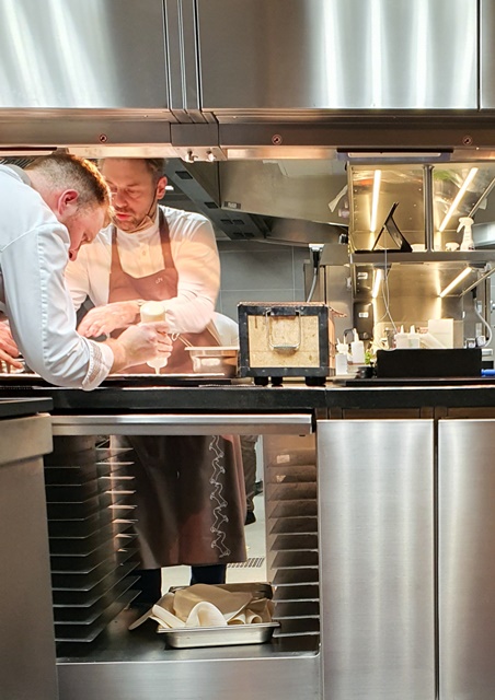 Nous allons faire le trou normand, qui n’en est pas un, en cuisine et mes amies américaines sont subjuguées. Le ballet de l’équipe de cuisine est calme et serein. Chacun sait ce qu’il doit faire et apporte une implication totale.