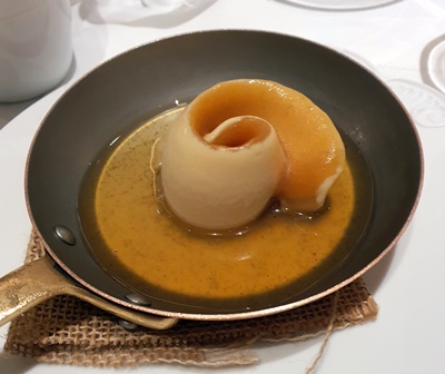 Nous avons tous pris le dessert Normandie affective car c’est la région d’origine d’Arnaud Donckele. Il y a marqué sur le menu pour les desserts « harmonie de création et d’amusement entre Maxime et Arnaud » et cela résume bien ce que l’on ressent de la volonté d’Arnaud. Tout est joyeux et souriant. Arnaud vient fréquemment à notre table servir les sauces, ajouter un commentaire ou un conseil. Nous sommes au paradis.