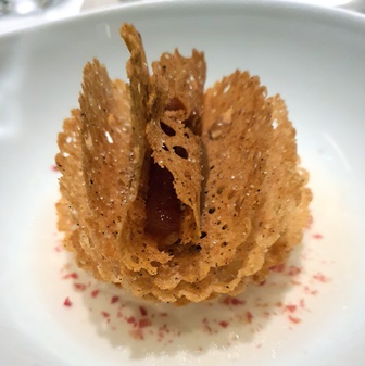 Arnaud Donckele est le prince des sauces et des acidités. Chaque bouchée est un envol vers l’Olympe. Tout est si précis, mesuré et gourmand que l’on est pris dans un tourbillon de saveurs parfaites. Le champagne est très vif, précis et se met au service des goûts qu’il accompagne. On se régale.