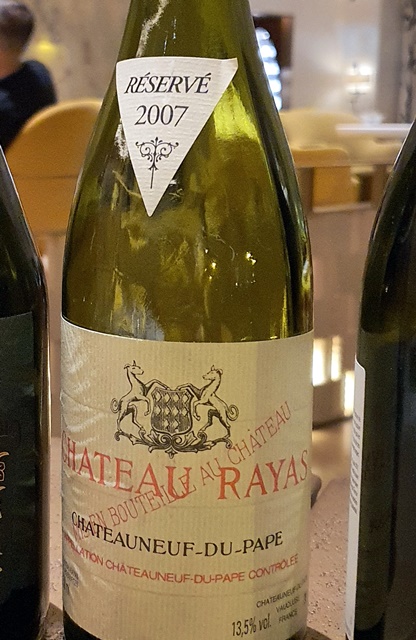 Le Château Rayas Châteauneuf-du-Pape blanc 2007 est la dernière de la cave. Le vin est époustouflant de générosité, d’ampleur et de largeur. Sa palette aromatique est infinie et cela convient parfaitement à la complexité des sauces et des acidités. Ce vin est au sommet de son art.