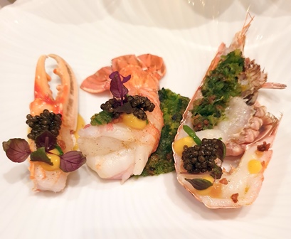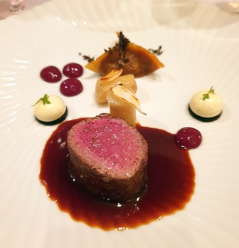 L’ami arrive et choisit trois champagnes. Il me demande de décider de l’un des trois. Ce sera un Champagne Charles Heidsieck cuvée Charlie 1985. Ce champagne est absolument délicieux, fin, vif, avec de petits accents lactés très agréables et une vivacité de bon aloi. Le choix était bon. Mon ami ayant un peu peur des saveurs de la mer nous prenons des langoustines au caviar absolument délicieuses et à peine cuites, presque crues, ce qui est d’un grand plaisir. Le vin blanc est servi maintenant. Le nez est explosif et racé. En bouche, la richesse du vin est impressionnante. Mon ami dit que ce vin est forcément un grand cru. Il est incroyable de richesse et de persuasion. Il a pour mon goût les belles caractéristiques des grands crus du Domaine Leflaive. Qui aurait pu imaginer un tel niveau ? Ce doit être plus qu’un Chassagne-Montrachet, peut-être un Chevalier-Montrachet Girard Père & Fils. A la couleur j’avais pensé années 40. La bouteille est plus vieille, sans doute de réemploi. Le vin pourrait être plus vieux mais gardons l’hypothèse de Chevalier-Montrachet Girard Père & Fils années 40. Le vin va rester parfait jusqu’à la fin du repas.