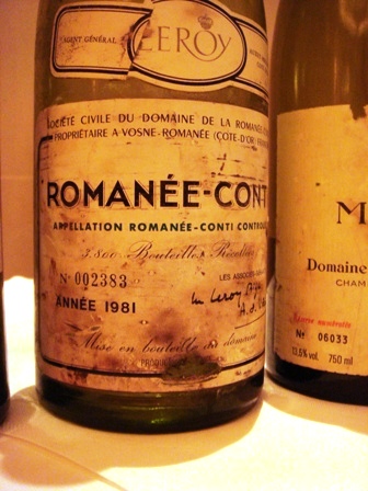 Chateau Haut-Brion 1958, Chateau Ausone 1958, Romanée Conti 1981