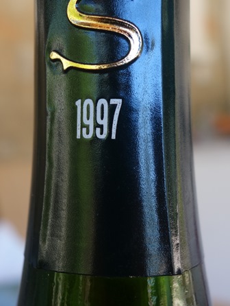 Nous invitons à dîner les amis de notre commune du sud qui participeront aux agapes du 15 août. Le prétexte est de préparer les menus des deux dîners prévus, l’un chez eux l’autre chez nous. Pour l’apéritif, j’ouvre un Champagne Salon 1997. L’attaque de ce champagne est d’une rare fluidité. On sent que ce 1997 s’ouvre et s’affirme. C’est un beau champagne racé, tout en suggestion. On le rangerait volontiers dans les champagnes romantiques. Nous grignotons des olives noires, des gressins frottés d’une anchoïade particulièrement goûteuse, de la poutargue et le Salon est à son aise avec toutes ces saveurs. Un signe qui ne trompe pas, c’est que le 1997 est asséché à vive allure aussi l’idée me vient d’explorer ce que donnerait une comparaison avec Salon 1996.