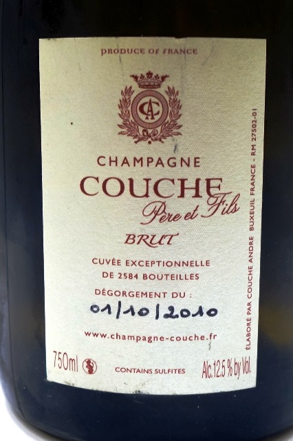 Un nouveau dîner avec mon fils. Une sommelière fidèle de l’académie des vins anciens m’a offert un Champagne Sensation 1995 de la maison Couche Père & Fils dégorgé le 1/10/2010. La bouteille est jolie, mais le bouchon aggloméré est de piètre qualité alors qu’il s’agit d’une cuvée exceptionnelle de 2584 bouteilles. Le nez est assez discret mais racé. Le vin est fringant, joli, de belle facture. On se sent bien avec ce champagne qui n’a pas une complexité extrême mais se révèle un bon compagnon de gastronomie. Deux jambons ibériques, l’un plutôt sec et l’autre bien gras accompagnent le champagne élégamment.