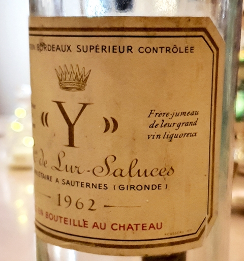 Le jour venu, à 15h30 j’ouvre les vins. Je coupe la capsule de l’Y d’Yquem 1962 et je verse le vin dans une carafe. Je me sers un petit verre. Bonne nouvelle, le nez du vin est pur, le vin n’a pas été dénaturé par le bouchon, ce qui semble montrer que le bouchon était encore en place et n’a baissé que lorsque j’ai pris en main la bouteille.