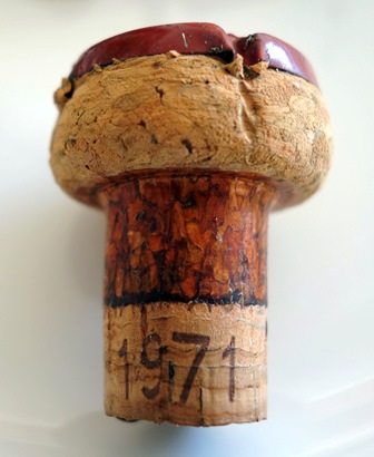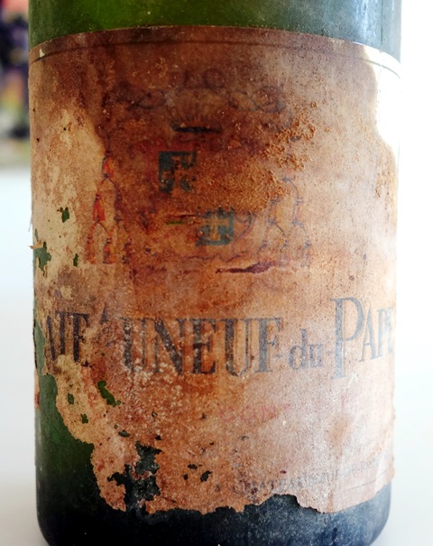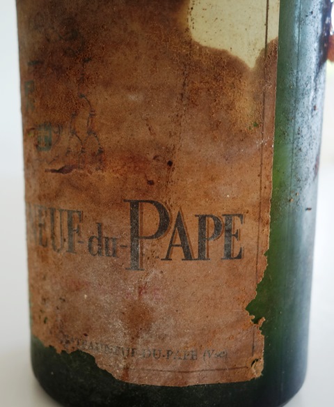 Nous commencerons par un champagne et finirons par un champagne rosé que je mets au frais. Pour le repas, que mettre à côté de la merveille annoncée par mon ami. Je furète dans la cave et une bouteille attire mon regard. C’est un Châteauneuf-du-Pape blanc au niveau à moins de cinq centimètres du bouchon, sans indication ni de vigneron, ni d’année. La seule information est celle d’un bandeau où l’on peut lire « médaille d’or, Foire d’Orange 23 janvier 1971 et Concours Agricole Paris 6 mars 1971 ». La couleur est belle et je me dis que l’ami qui va venir est l’une des rares personnes avec laquelle je peux envisager de servir un tel vin totalement inconnu. J’ouvre la bouteille un peu avant 18 heures et le bouchon n’indique que l’appellation Châteauneuf-du-Pape. Ce sera amusant de le découvrir à l’aveugle. Je carafe donc et la couleur du vin dans la carafe est magnifiquement dorée, d’un or clair mais soutenu. Le parfum est discret mais semble pur.