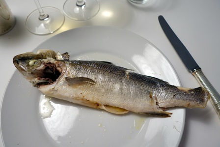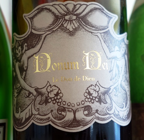 La bouteille rend l’âme très vite, tant le champagne est gourmand et nous passons à table. Le vin apporté par notre ami est un Côtes de Provence Château Maravenne Donum Dei blanc 2012. La traduction du latin est « Don de Dieu » et cela correspond bien au parfum du vin qui est pénétrant et expressif. C’est un très bon vin, ample, mais relativement peu typique des Côtes de Provence et parfois simple lorsqu’il se réchauffe dans le verre. Il est bon, mais mon cœur va pencher vers le suivant.