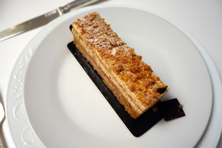 Pour le dessert j’ouvre un Champagne Dom Ruinart Rosé 1990 qui est un des rosés que je préfère lorsqu’il est ancien. Celui-ci ne trompe pas mon attente, vin joyeux et plein de charme, à la bulle active d’un vin jeune. Le dessert sucré ne lui apporte pas grand-chose alors que les macarons se dévorent en le buvant. Malgré la belle prestation de ce rosé, je préfère la complexité et le dépaysement du Moët 1971.