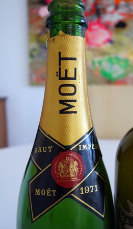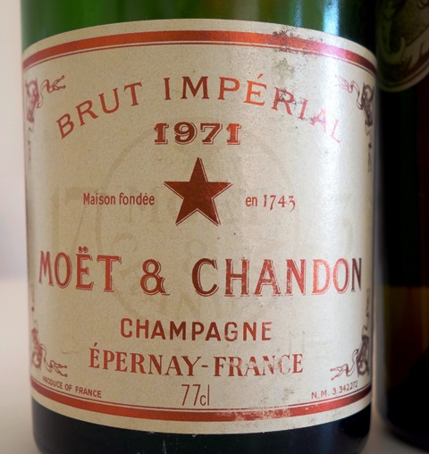 L’ami arrive et j’ouvre un champagne ancien car je sais qu’il les adore, un Champagne Moët & Chandon Brut Impérial 1971. Le bouchon vient sans faire de pschitt. La couleur est très joliment ambrée, plus que celle du vin blanc que je venais d’ouvrir. Il y a encore un peu de pétillant, plutôt discret. Tout se joue sur les myriades de saveurs de ce champagne complexe. Il a des fruits bruns, des tisanes et une belle structure vineuse. Mais c’est surtout la noblesse de ce champagne qui a dû avaler son dosage qui nous fait entrer dans le monde merveilleux des champagnes anciens, où l’on dirait qu’un sauternes ayant mangé son sucre s’acoquine avec un pétillant. Nous grignotons des tranches d’une originale fine baguette fourrée de tomates, chorizo et olives et badigeonnée de traces de fromage doux cuit.