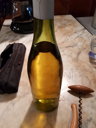 La bouteille à moitié pleine du vin local a un nez horrible. La tentation est grande de le jeter à l’évier et je vois des têtes étonnées lorsque je dis : « ne jetons pas, les miracles ne sont jamais exclus ». Ma remarque est plus pédagogique que réelle, car le vin ne sera pas buvable, mais ce qui est étonnant, c’est que toutes ses mauvaises odeurs auront disparu quelques heures plus tard.