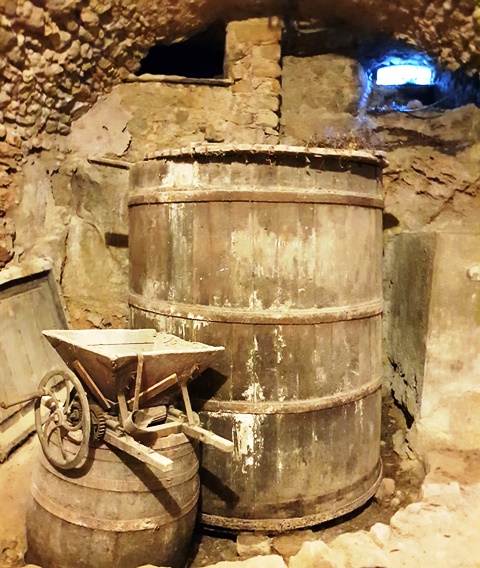 Hugues a préparé pour les rouges un Chambolle-Musigny 1995 qui a belle allure, un Mercurey et trois Rully de la même maison de 2012, 2014 et 2016. Hugues suggère que l’on prenne un jeune Rully et je lui demande s’il en a de vieux. Il est en effet actionnaire du domaine et les dividendes versés le sont en liquide. Le plus vieux millésime qui date de sa prise de participation est 2009. Nous irons chercher un 2009 en cave. Pour compléter le programme nous descendons dans la cave qui est assez extraordinaire. Elle est voûtée, et la hauteur de la voûte dépasse les cinq mètres car ici on faisait du vin, avec une cuve de vinification pour les blancs et une pour les rouges. On dirait que le temps s’est arrêté il y a trois siècles.