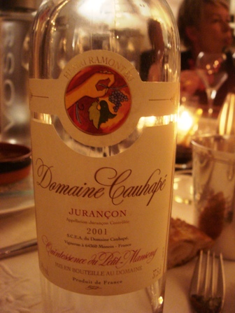 Dîner chez des amis avec un champagne Roederer très agréable et frais suivi d’un champagne Perrier Jouët Belle Epoque 1989 d’un goût montrant déjà des signes de maturité. Très plaisant, il est sur le point de bascule entre la jeunesse jaune et blanche et la maturité plus ambrée. Un Jurançon Cauhapé Quintessence du Petit Manseng 2001 est fort élégamment fruité dans le doucereux discret. Il convient bien à la crème brulée au foie gras qu’il accompagne. Le Château Pape Clément 1996 est bon, mais manque un peu de coffre et de longueur. Fort tristement, le Château Léoville Las Cazes 1989 sans en avoir le nez a les effets d’un triste bouchon. Quel dommage, car la joue et la queue de bœuf sont impérialement bonnes. Un Moulin des Dames, Anthologia 96, Bergerac sec Famille de Conti 1996 a de belles complexités, mais je ne mords pas. J’ai apporté un vin que je n’avais jamais bu, Vendanges de Novembre, appellation Arbois contrôlée, savagnin Jacques Tissot 2005. C’est absolument passionnant et par une chance extrême le dessert complexe lui fait écho. Nous finissons par un Ramos Pinto Porto 30 ans, qui titre 19,5° délicieux comme un bonbon. A l’aveugle, je ne suis pas sûr qu’on ne confondrait pas avec un Rhum, tant l’alcool est pénétrant. Délicieux dîner d’une chaude amitié, fondée il y a près de trente ans sur la pratique du même sport où brille en ce moment la France, le squash.