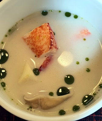 Teshi a réalisé une multitude de plats assez incroyable sur la base d’une cuisine japonaise pure alors que dans son restaurant, c’est une cuisine française avec des inspirations japonaises. Tout n’est pas forcément adapté aux vins, mais peu importe, nous nous régalons. Voici le programme incroyable : caviar (osciètre impérial) ricotta, nouille vermicelle à l’huile de sésame / Ceviche de coque à la livèche et sa soupe / sashimi de daurade et sériole, wasabi frais d’Azumino / tartare de bœuf de Normandie, tomate, burrata et basilic thaï / ravioles de homard breton, soupe de coco aux herbes / thon, sauce ravigote au yuzu gosyou / salade de mortadelle / aile de poulet Mirinboshi / canard mariné au riz fermenté, sauce au foie gras et sésame, figue / sushi (wagyu, daurade, sériole, saumon) / Tonkotsu ramen (nouilles japonaises au porc) / fraisier.