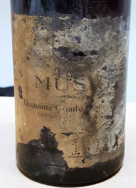La deuxième bouteille que j’ai choisie pour ce dîner est un Musigny Comte de Vogüé d’un lot de trois bouteilles dont deux n’ont pas d’étiquette et la troisième en a une, abîmée, sur laquelle on pourrait lire soit 1979 soit 1972 mais plus probablement 1972 du fait de la position de petits trous, puisque les années sur les étiquettes de ce vin sont marquées par des points qui sont des petits trous qui percent l’étiquette. N’ayant pas la possibilité de trouver un lien avec un achat dans mes archives, le 1972 n’est pas sûr mais hautement probable. Lorsque j’ai ouvert la bouteille il y a quatre heures, j’espérais trouver le millésime sur le bouchon. Raté ! le bouchon très lisible confirme le nom du vin mais pas son âge. Lorsque nous sentons le vin, mes enfants et moi, c’est comme si nous étions envahis par une bourrasque ayant caressé la Côte de Nuits. Le parfum est envoûtant. Et dès que nous portons nos lèvres à ce vin, c’est une extase. Je vois l’émerveillement sur les visages de mes enfants. Ce vin a quelque chose d’extraordinaire. Ayant encore vivace la mémoire de la Romanée Conti 1980 bue hier, je ressens une émotion de même niveau et très différente car là où la Romanée Conti est sérieuse, le Musigny Comte de Vogüé 1972 explose de joie de vivre et d’un beau fruit rouge. Ce vin est du velours tant il y a de douceur combinée à une puissance contenue. On est en haut de l’Olympe quand on boit ce vin où toute la délicatesse est fondue dans une subtilité unique. Et le fait d’avoir pu goûter en un temps si proche deux merveilles, l’une plus cistercienne, l’autre plus gourmande, me ravit. La douceur et le velours sensuel de ce vin au fruit joyeux sont d’un bonheur rare. Décidément, j’aime les vins dans les soi-disant petites années car on lit mieux la précision de leurs complexités.