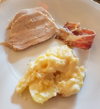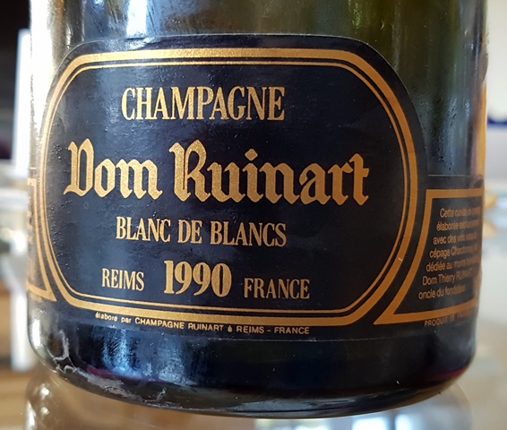 L’apéritif est fait de petites viennoiseries salées composées par les petits enfants et de jambon ibérique. Le Champagne Dom Ruinart 1990 est un de mes favoris et j’imaginais volontiers que 1990 était l’un des Dom Ruinart les plus réussis. Quelle n’est pas ma surprise de constater que cet excellent champagne, opulent, large en bouche et au beau fruit jaune doré est très loin de valoir le Dom Ruinart 1973 que j’avais bu la veille. Il y a dans le 1973 une vivacité et un côté cinglant que l’on ne retrouve pas aussi marqués dans ce 1990. Il est grand, jeune encore alors que le 1973 est à pleine maturité, il comble mes enfants, mais je dois dire que le 1973 le surpasse de vingt coudées. Voilà qui déboulonne l’une de mes icônes. Ça n’empêche pas ce 1990 d’être grand.