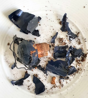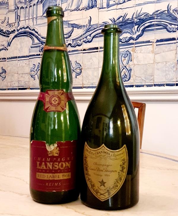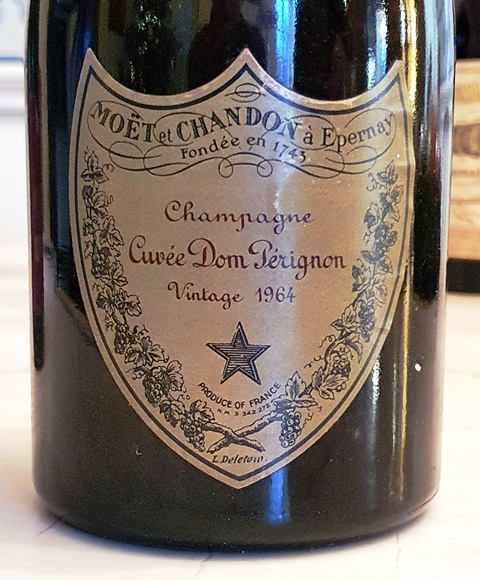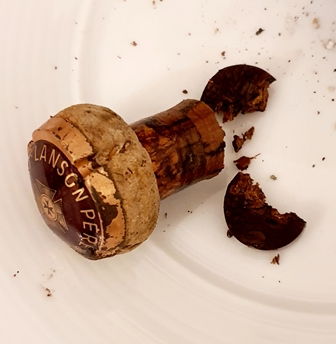 Peu avant 19 heures j’ouvre les deux champagnes de 1964. Pour les deux bouchons, la lunule du bas de bouchon qui est collée au bouchon ne sort pas avec le haut et je suis obligé d’utiliser un tirebouchon pour extraire ces lunules de quelque cinq millimètres d’épaisseur. Dans les deux cas il n’y a aucun pschitt et les parfums sont encourageants.