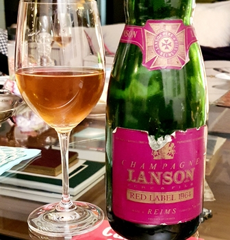 Mon fils arrive le premier. Il fait soif aussi je sers le Champagne Lanson Red Label 1964 à la belle bouteille en forme de quille. Le champagne est légèrement ambré. La bulle est rarissime. Le champagne est divin, dégageant une joie de vivre incroyable et un charme redoutable. Le champagne est très doux, sans qu’on puisse dire qu’il est fortement dosé. Il est si convivial qu’on ne peut que l’adorer.