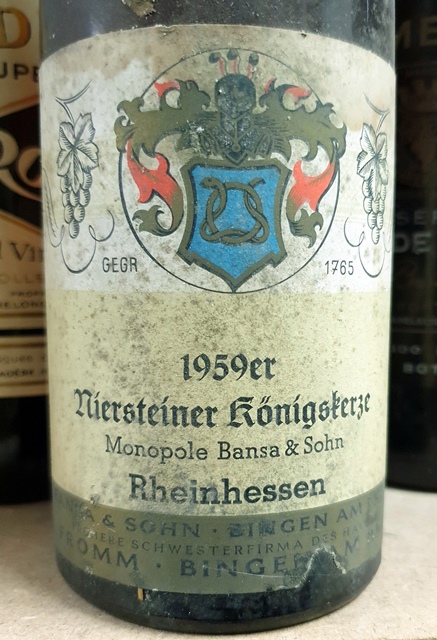 Pendant l’apéritif, j’ouvre les deux vins qui vont suivre. Sur le plat préparé par ma femme je sers un Niersteiner Königskerze Monopole Bansa & Sohn Rheinessen 1959. Ce vin légèrement ambré est sec mais doté d’un lourd botrytis qui le rend à la limite du liquoreux. Il est d’une cohésion et d’une cohérence qui n’appartiennent qu’aux vins anciens. Il est riche, très long en bouche et infiniment séducteur. On se dit à chaque occasion que l’on ne boit jamais assez de vins blancs allemands. L’accord avec le sucré des pétoncles est tout simplement sublime, la pâte italienne jouant un rôle d’amortisseur, pour que le goût du vin se prolonge en bouche. Nous sommes aux anges. La persistance aromatique de ce vin est rare.