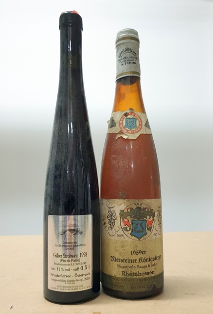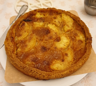J’ai apporté une tarte à l’ananas et en secours une boîte de conserve de litchis, car il n’en existe pas de frais. Le Golser Strohwein (vin de paille) Georg Lunser Autriche 1998 en bouteille de 50 centilitres titre 11°. Il est nettement plus ambré que le vin allemand. Ce vin d’une richesse rare est un Stromboli de saveurs. Il est kaléidoscopique. Il est riche, très sucré, et tous les fruits exotiques s’y trouvent. A l’ouverture ce qui frappait c’était son parfum de litchi. Mais associé au gâteau, il respire l’ananas. Ce vin a tout d’une confiture multi fruits, plombant, mais offrant aussi une belle fraîcheur ce qui n’est pas paradoxal. Ce vin est un péché de gourmandise.