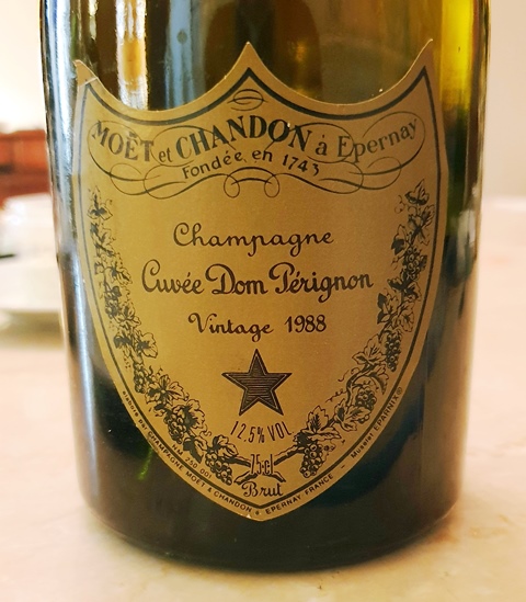 Pour le caviar, un choix naturel est un Champagne Dom Pérignon 1988. Le nez du champagne est bouchonné, ce qui n’arrive quasiment jamais, et la bouche est aussi marquée par le bouchon, mais sans que ce soit rebutant. Le bouchon ne sent pas le bouchon, ce qui donne une lueur d’espoir. En une dizaine de minutes le parfum et le goût n’ont plus la moindre trace de bouchon. Alors, peut-on dire qu’il s’agissait de bouchon, qui est généralement un défaut très tenace ? Le champagne devient agréable sans être transcendant, alors que son année est l’une des plus belles.